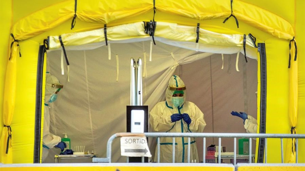 Carpa per la realització de proves PCR a Barcelona .- EFE/Enric Fontcuberta
