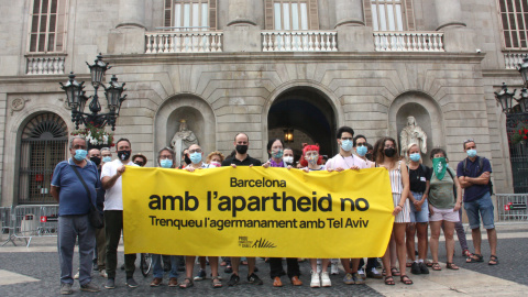 Imatge d'arxiu d'una concentració de més d'una vuitantena d'entitats reclamant a l'Ajuntament de Barcelona que trenqui el seu agermanament amb Tel Aviv. Imanol Olite / ACN