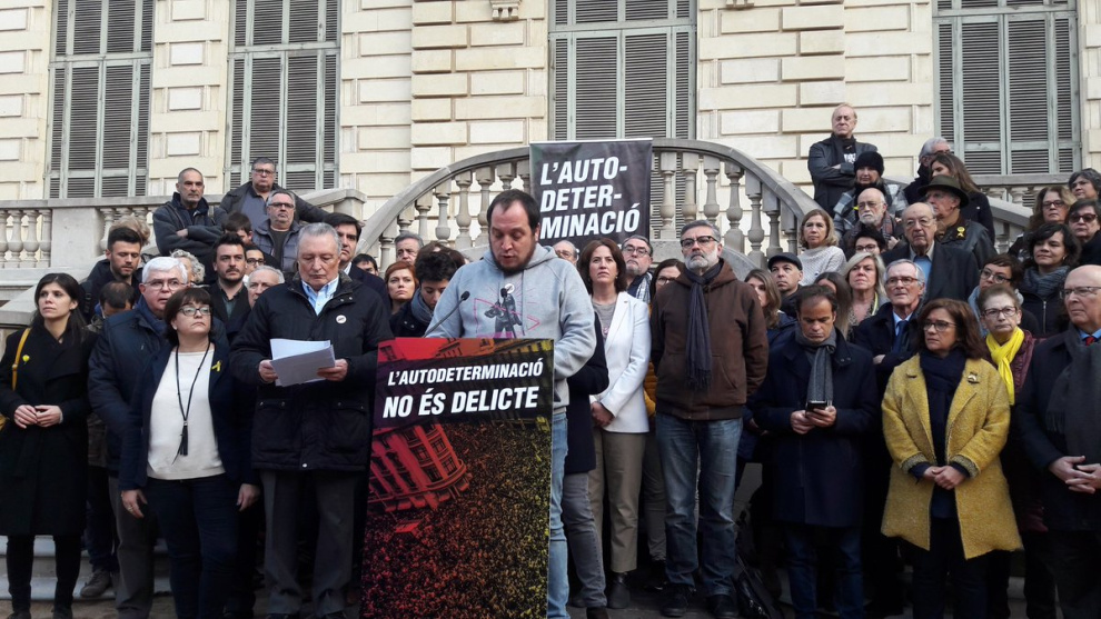 Anuncien convocatòries pels dies 12, 16 i 21 de febrer i 16 de març. Fan una crida a "activar la mobilització social" contra la causa del judici de l'1 d'octubre pels "drets socials i polítics". A l'acte també hi participen representants dels comuns, com Elisenda Alamany o Jaume Asens.