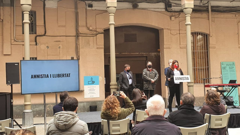 L'acte, que forma part de la iniciativa "Aministia Ara", ha començat amb l'actuació de la cantant Gemma Humet interpretant "Què volen aquesta gent?", i ha comptat amb la participació d'Alerta Solidària, el Centre de Drets Humans Irídia, Esquerra Republicana de Catalunya, la CUP i Junts per Catalunya.