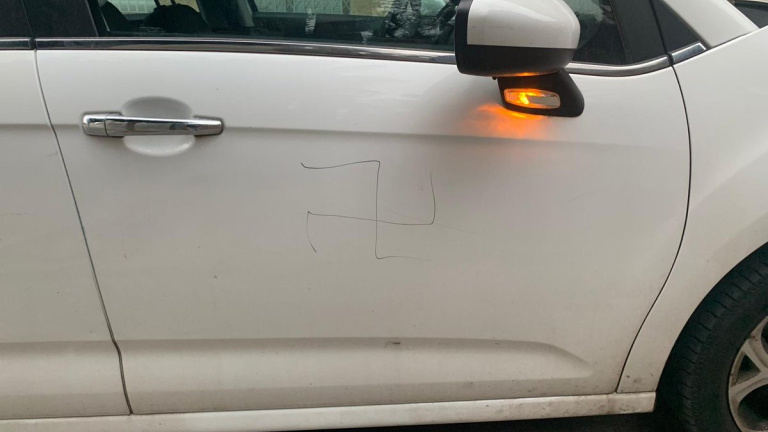 Cotxe ratllat amb esvàstiques d'un regidor no adscrit de Sant Feliu de Llobregat. @OCL_H