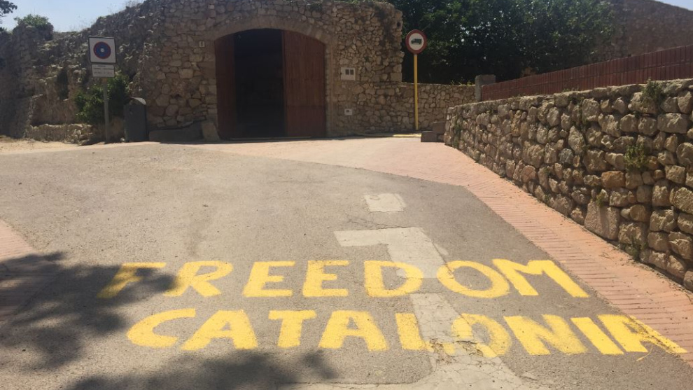 Al llarg del dia, a més, no pocs veïns ocasionals d'aquest poble, molt visitat però poc habitat, han posat als seus balcons, portes i finestres altres domassos i cartells, per reivindicar democràcia (SOS democracy!), la República i l'alliberament presos polítics.