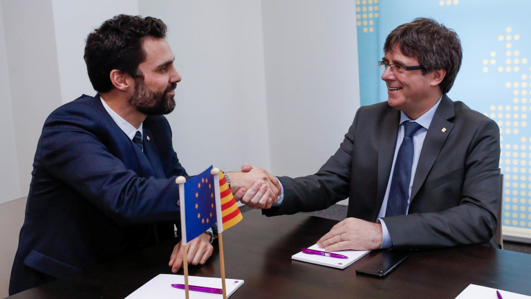 "No puc ésser detingut si no és en cas de delicte flagrant, li recorda el president de la Generalitat cessat al president de la Cambra. JxCat elegeix Jordi Sànchez com a president del seu grup parlamentari. El Suprem denega permís a Junqueras i Sànchez per assistir al ple, però podran delegar el seu vot. JxCat demana al TC que aixequi les seves mesures cautelars, i l'alt tribunal es reunirà a les 13.00h per estudiar la petició. L'ANC crida a manifestar-se davant del Parlament, amb el lema 'Defensem el que hem votat'