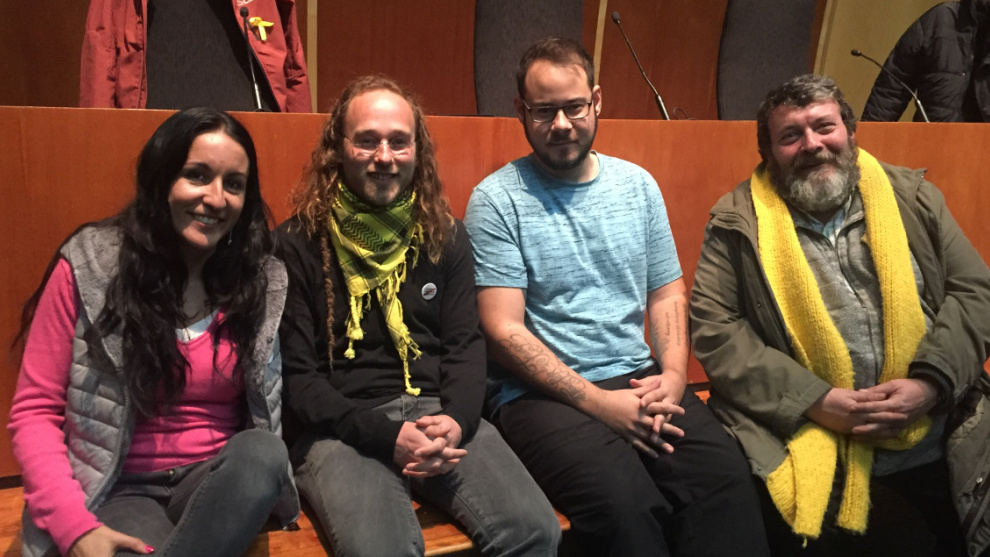 Meritxell Esquerra, Kenneth Batiste, Pablo Hásel i Manel Riu, els quatre participants en el col·loqui d'aquest divendres a Lleida.