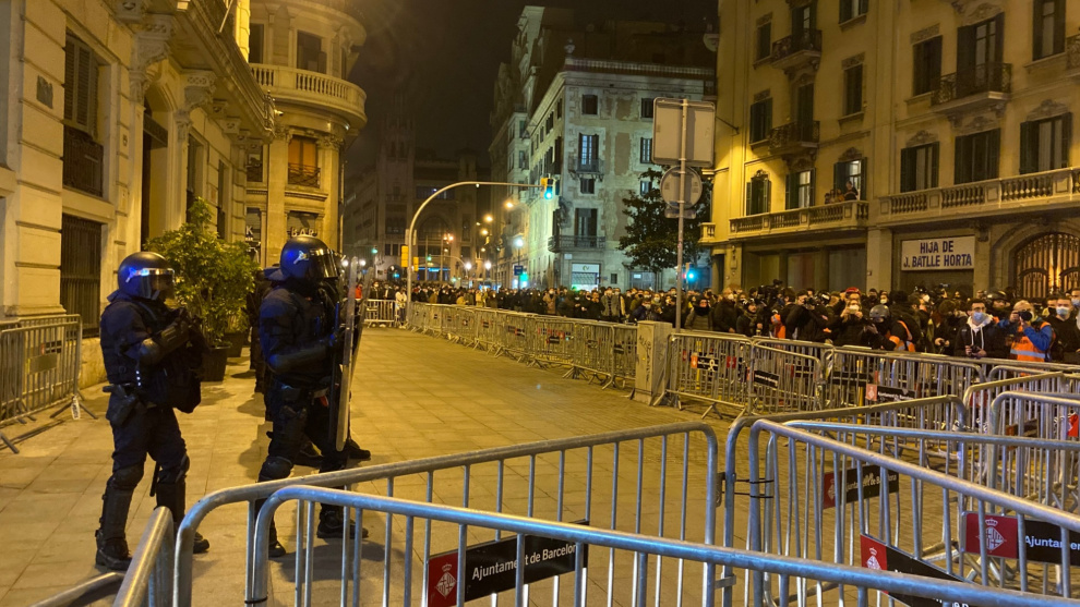A Barcelona, uns 400 manifestants s'han concentrat a plaça Universitat de Barcelona i, poc abans de les vuit del vespre, s'han començat a moure en direcció a la plaça Urquinaona, cridant consignes com ara "Plaça Urquinaona, ho tornarem a fer". Després d'arribar a Urquinaona han seguit caminant cap a Via Laietana, amb consignes com "Llibertat Pablo Hasél" o "A por ellos".