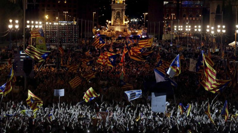 Vista general de los asistentes al acto unitario del independentismo a dos días del 1-O, esta noche en Montjuic, Barcelona./EFE