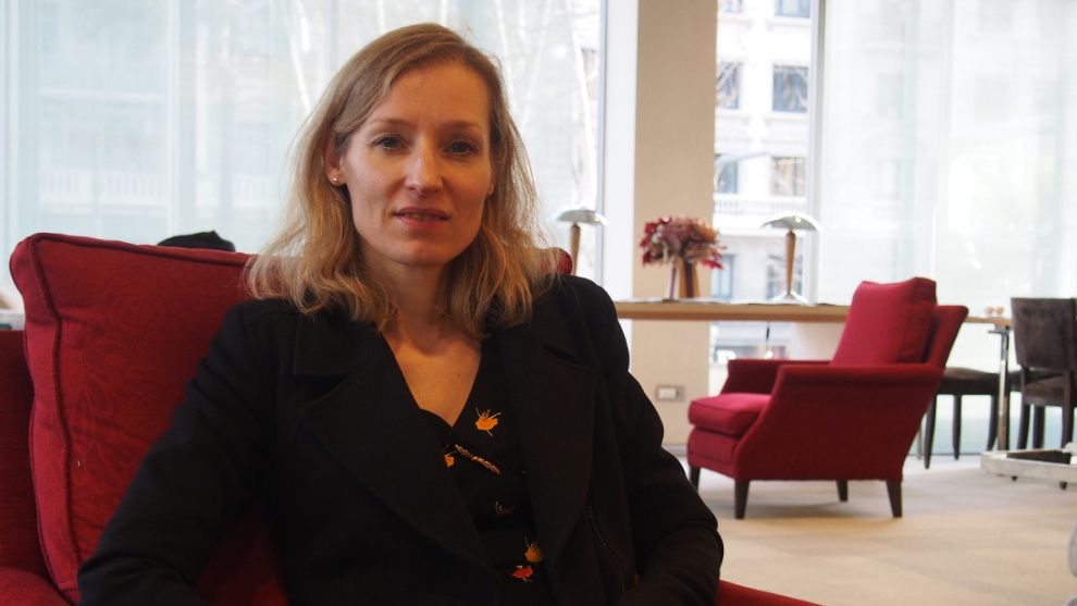 La filósofa Corinne Pelluchon, durante la entrevista con Público. / Queralt Castillo Cerezuela.