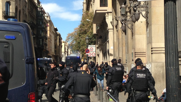 Imatge dels antiavalots dels Mossos en el desallotjament dels estudiants en l'acció a la Secretaria d'Universitats per reclamar la rebaixa de taxes el 15 de març de 2018.