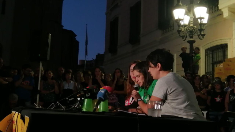 La convocatòria s’ha fet pública en una emocionant roda de premsa, en què la familiar d’un dels empresonats ha conduit l’acte. “Tot eren nervis i corredisses. No sabíem que passava. Alhora, un helicòpter sobrevolava els nostres caps contínuament”, ha narrat. “Cadascú ho va viure des d’un lloc diferent, com moltes de nosaltres ho vam fer des de la porta esbotzada de casa nostra”. Un relat trencat en moltes ocasions per la seva pròpia emoció, amb un fil de veu i els ulls plorosos en la major part de la compareixença. Uns tristos silencis que eren respostos pel públic amb un tancat aplaudiment.