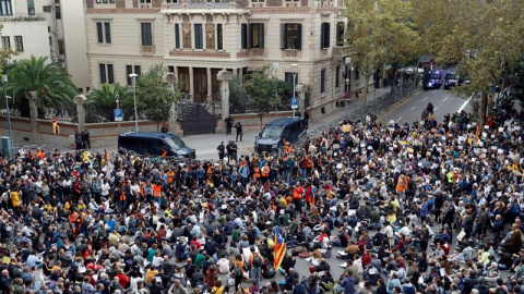 Les protestes continuen una setmana després de la publicació de la sentència del Tribunal Suprem sobre el judici de l’1-O. La visita del president espanyol en funcions, Pedro Sánchez, ha provocat una nova convocatòria del Tsunami Democràtic. El moviment ha fet una crida a la ciutadana a concentrar-se davant la Delegació del Govern espanyol amb pancartes amb el lema "Spain, sit and talk", és a dir, "Espanya seu i parla", a la cantonada del carrer Mallorca amb Roger de Llúria.