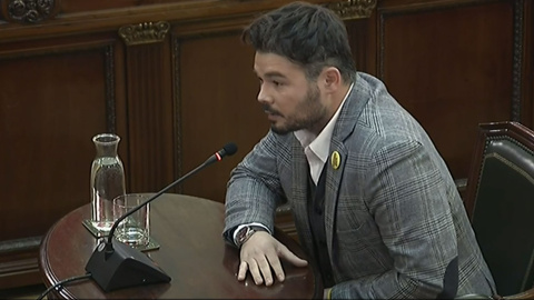 Davant la Sala penal del Tribunal Suprem, i quan l'advocat de Vox Pedro Fernández ha afirmat que li realitzaria una única pregunta, Rufián ha incidit que li sembla "una vergonya" que se'ls permeti ser acusació, "que estiguin aquí com a partit xenòbof i racista".