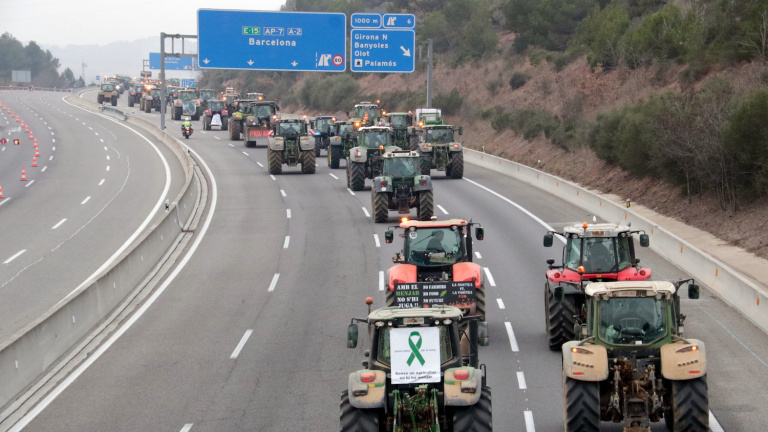 Segona jornada de protestes dels pagesos: centenars de tractors inicien una marxa lenta cap a Barcelona