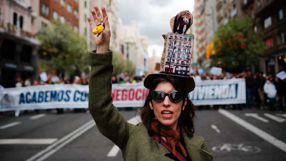 Imatge d'arxiu d'una dona en una manifestació a favor del dret a un habitatge digne, a Madrid.Europa Press