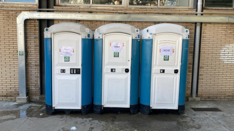 Els lavabos portàtils que s'han instal·lat pels alumnes i professors