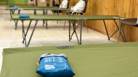 L'espai que estava preparat per a la pernoctació d'una quinzena de persones del B9 en una parròquia de Badalona.Jordi Pujolar / ACN