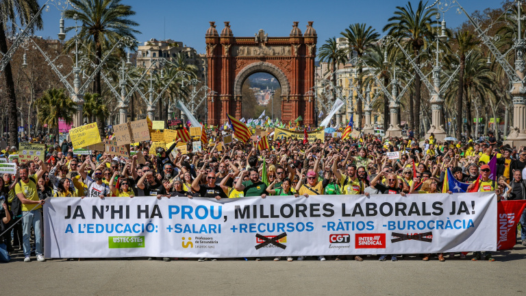 L'acord que Salvador Illa va titllar de "pacte de país" fa tot just quinze dies inclou una pujada salarial de 3.000 euros repartida en quatre anys i una injecció de 300 milions d'euros per a l'escola inclusiva. Tanmateix, a peu de carrer, aquestes promeses "són insuficients" per a la comunitat docent. Les diverses columnes de docents provinents de diversos punts del territori han confluït a la plaça Tetuan de la capital, on han iniciat la manifestació unitària que ha culminat davant del Parlament, al Parc de la Ciutadella, on ha coincidit amb la mobilització dels metges, també en vaga.