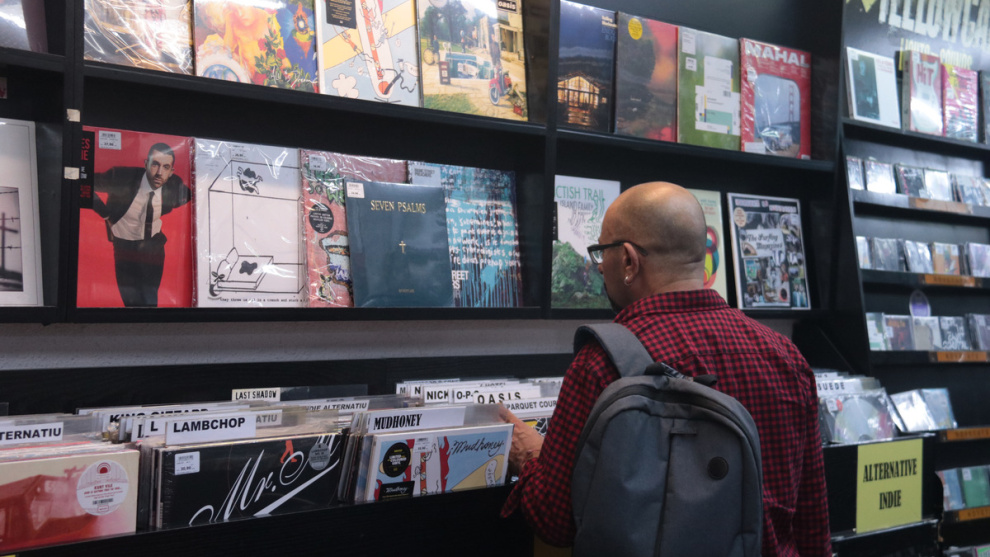 Un client de la històrica botiga Discos Revolver a la secció de vinils, abans del tancament al juliol passat