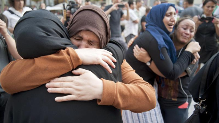 Membres de la comunitat musulmana, reunits a Ripoll, Barcelona i altres localitats van manifestar la seva indignació davant qui vol associar la seva religió amb els actes de violència, exhibint cartells amb la frase "no en el men nom", i amb crits d'identificació amb Catalunya i Barcelona.