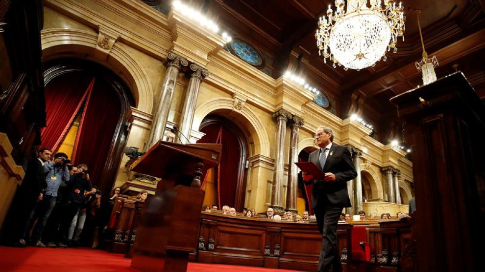 Quatre dies després que es coneguessin les acusacions de la Fiscalia del Tribunal Suprem i de l'Advocacia General de l'Estat als dirigents sobiranistes, el president de la Generalitat, Quim Torra, ha comparegut a petició pròpia al Parlament de Catalunya per protagonitzar una intervenció molt dura contra el govern espanyol. Torra ha oficialitzat la ruptura del seu govern i les formacions que el conformen amb l'executiu de Pedro Sánchez i ha insistit que ni tan sols negociaran els pressupostos estatals mentre continuï la repressió.
