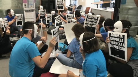 Una desena d'activistes entren a una seu del barri de Gràcia coberts amb caretes blanques en contra de les empreses de l'IBEX 35. Reparteixen un comunicat on denuncien "les maniobres" de les empreses amb l'Estat: "En una democràcia és inacceptable contribuir a l'estratègia de la por quan la ciutadania expressa les seves demandes polítiques o socials".