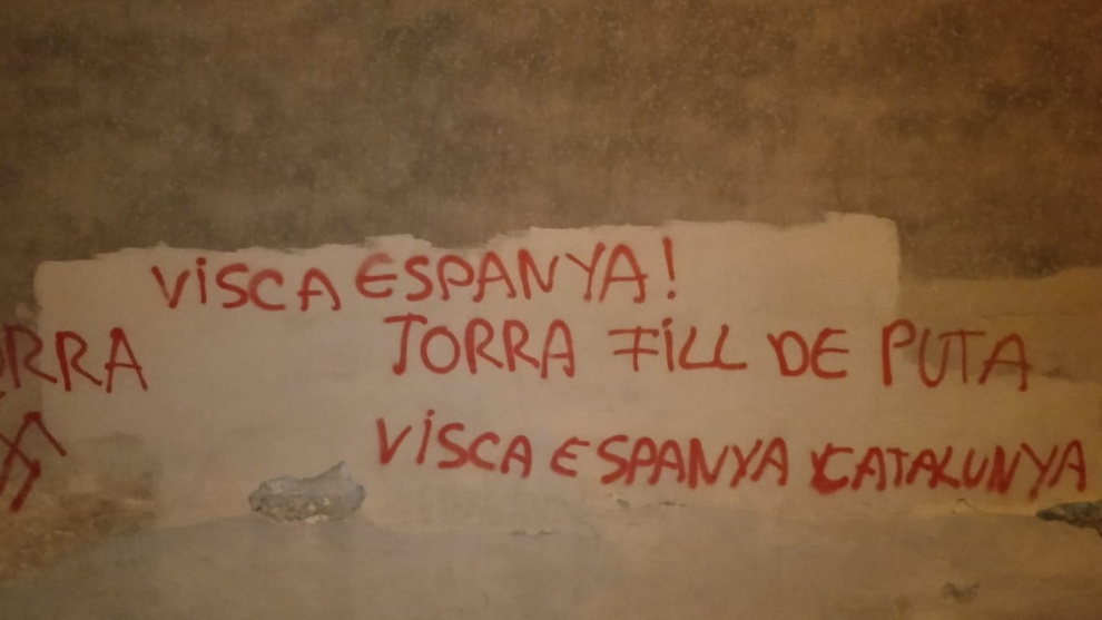 Els símbols utilitzats deixen poc lloc a dubtes sobre la ideologia dels autors de les pintades.