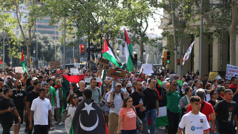 Unes 700 persones -segons la Guàrdia Urbana- s'han manifestat aquest dissabte pels carrers de Barcelona per defensar Palestina contra el "genocidi" d'Israel. La protesta ha començat a les 12 hores a la rambla del Raval i s'ha desplaçat fins a les places de la Universitat i de Catalunya, fins arribar al Passeig de Gràcia, per acabar a la seu de la Comissió Europea.