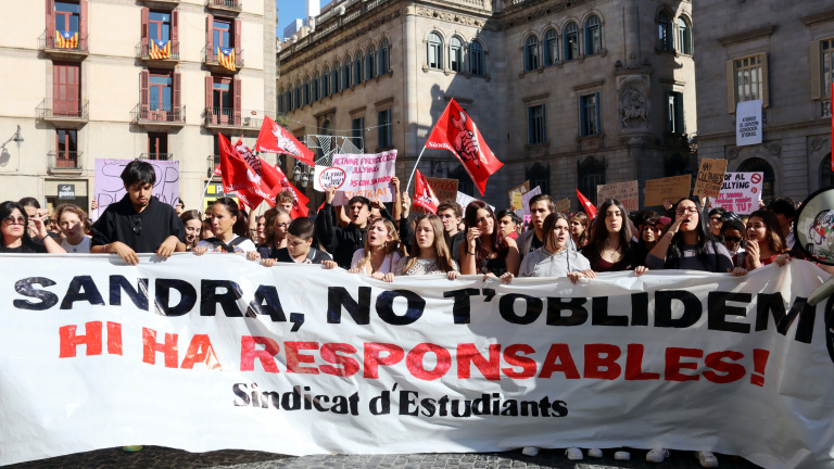 Convocats pel Sindicat d'Estudiants, els manifestants han demanat "més inversió en prevenció de l'assetjament escolar i en salut mental" i han clamat que "no són suïcidis, són assassinats". El portaveu Eider Bustos ha denunciat que "la mort de la Sandra no és un cas aïllat i es podria haver evitat": "És una mostra més que el sistema falla reiteradament", ha dit. Pel representant, l'assetjament escolar és també "una mostra de com el discurs de l'extrema dreta penetra en la joventut" i "assenyala allò que no és normatiu".