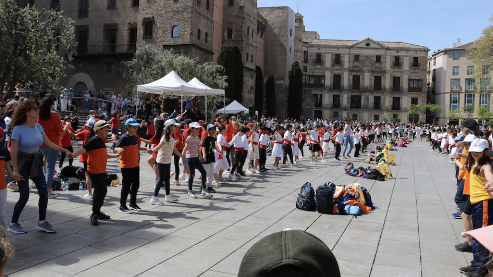Uns 400 escolars ballen una sardana multitudinària davant la catedral de Barcelona a ritme de 'Coti x Coti'